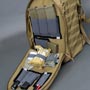-Frontal pocket has 2 simple sleeve pockets while, middle CCW and main compartment have loop fabric for the entire internal front and back sides to interface with hook backed pouches and accessories.