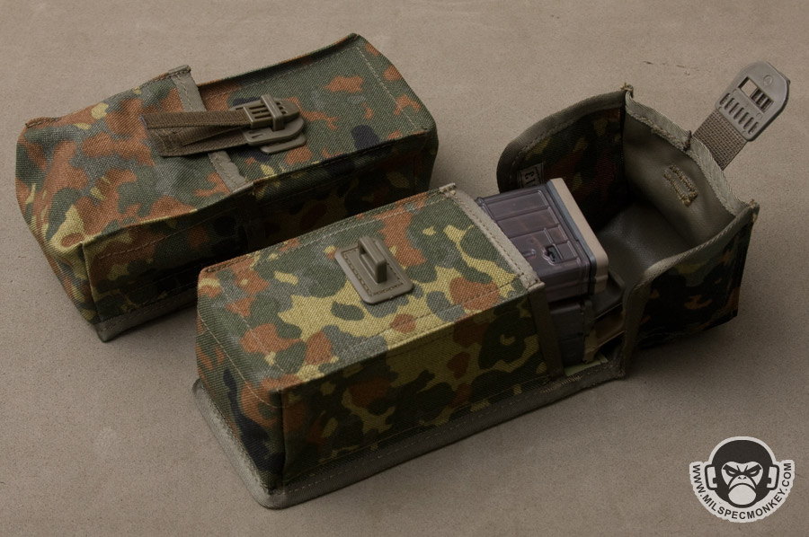 More treats from ze Germans offer up another variant of the popular modular chest rig design. PALS sizing is a solid 18 channels x 3 rows, but it should be noted the channel spacing is out of spec and closer to 1.25" wide rather than 1.5". I'll guess this is due to SIERRA 313 using MALICE clips for all PALS attaching so less room is needed. For those with tradition Natick snap pouches you likely will need to use tools to mount as the snaps are bulkier.